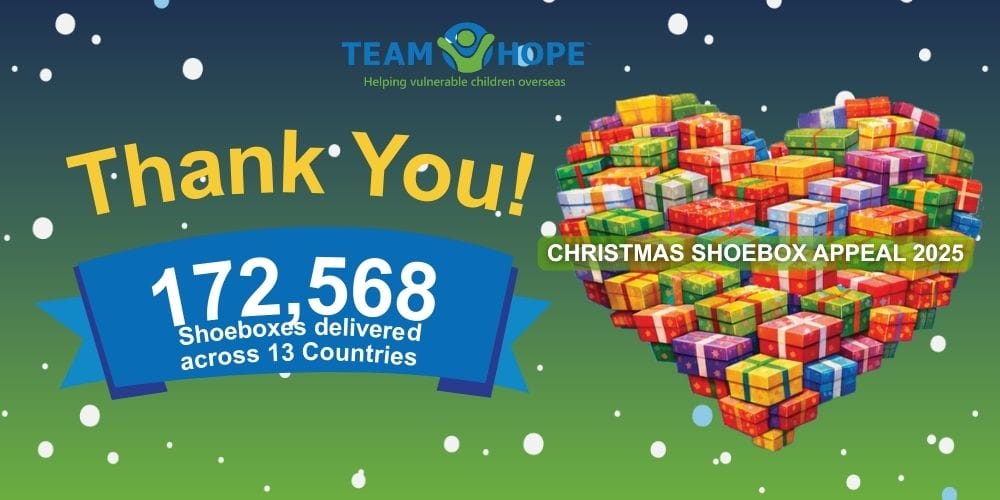 Team Hope’s Christmas Shoebox Appeal is an annual campaign that delivers gifts straight into the hands of children affected by poverty. Often these shoebox gifts are the only gift that a child will receive at Christmas and the joy that they bring is incredible. Since 2010, with your help, we have delivered over 3 million Christmas shoeboxes to children affected by poverty across the world.