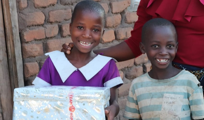 My name is Bertha, I am 8 years old and I’m from Malawi. When I was younger I didn’t go to school because my mum couldn’t afford to send me. Some nights me and my siblings even went to bed hungry. One day we were given Christmas Shoeboxes by Team Hope and we were so excited! Then Team Hope helped my mum learn how to make money and to save. Today, my brother and I go to school every day, and my sister goes to preschool. On Saturdays we love going with our mum to help her to sell vegetables at the market.